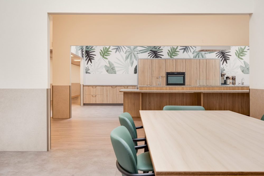 Het interieurconcept van Exsta sluit naadloos aan bij de visie van ’s Heeren Loo. Matthijs Tempelman: “Het inventaris biedt ruimte voor multifunctionaliteit. Zo kan het ingezet worden bij activiteiten, arbeid én ontspanning. Het inventaris is uitwisselbaar per ruimte in stijl en kleurstelling. Dit maakt dat we goed in staat zijn aanpassingen te doen wanneer de situatie daarom vraagt. Wat ons ook aanspreekt is het gemak waarmee het inventaris schoon gemaakt kan worden. Dit draagt bij aan een schone hygiënische werkomgeving. We zijn echt trots op het eindresultaat.”